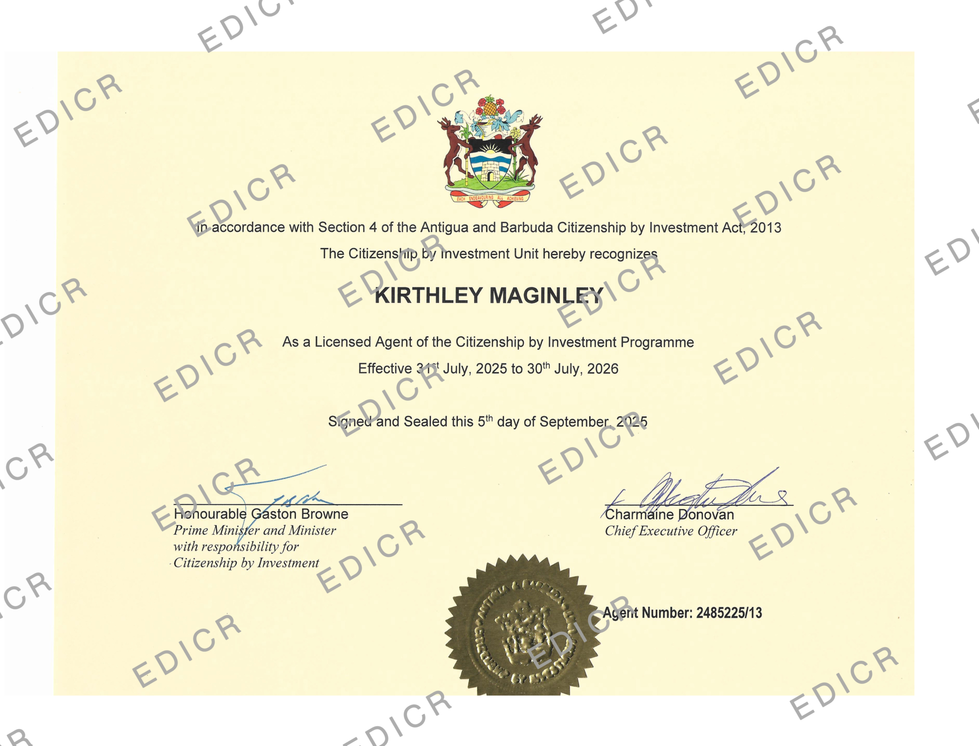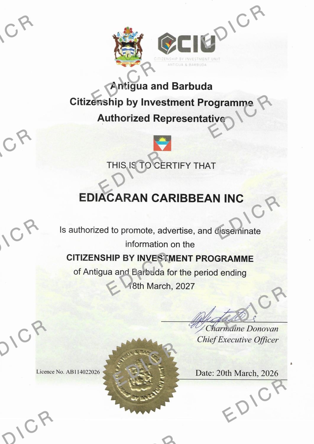 Antigua and Barbuda Citizenship by Investment Program Authorization Certificate